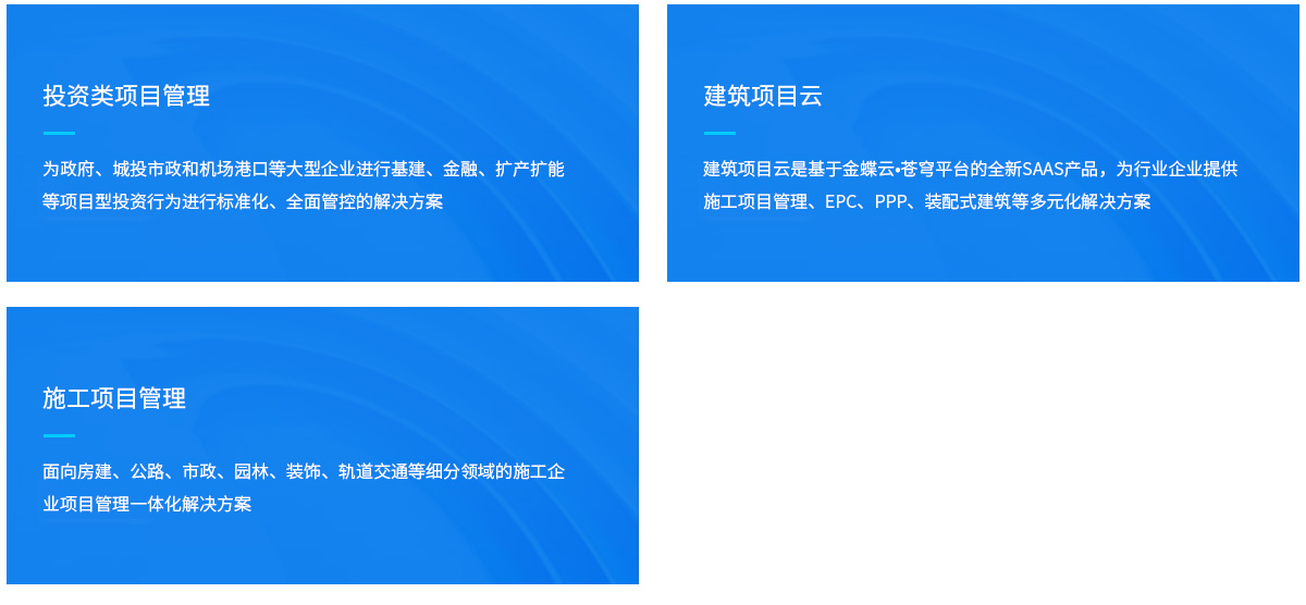 金蝶建筑企業(yè)數(shù)字化轉(zhuǎn)型整體解決方案,是金蝶在深刻洞悉建筑企業(yè)管理訴求和行業(yè)信息化發(fā)展?fàn)顩r的基礎(chǔ)上,為大中型建筑企業(yè)量身定制的企業(yè)一級(jí)化解決方案, 以強(qiáng)化項(xiàng)目管控、財(cái)務(wù)管控、資源管控、稅務(wù)管控四大企業(yè)核心管控為抓手,幫助企業(yè)打造產(chǎn)業(yè)鏈一體化融合、生態(tài)體系建設(shè)與共享,輕松實(shí)現(xiàn)企業(yè)數(shù)字化轉(zhuǎn)型