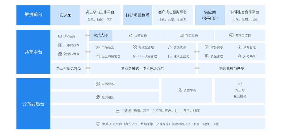 金蝶建筑企業(yè)數(shù)字化轉(zhuǎn)型解決方案,以項(xiàng)目管控、財(cái)務(wù)管控、資源管控、稅務(wù)管控四大企業(yè)核心管控要素出發(fā),融合項(xiàng)目管理、市場(chǎng)經(jīng)營(yíng)、財(cái)務(wù)、HR、OA供應(yīng)鏈、發(fā)票與稅務(wù)、CRM、BI、移動(dòng)應(yīng)用、第三方集成等多業(yè)務(wù)管理系統(tǒng),形成了建筑企業(yè)完整的、全面的、集成化、一體化的企業(yè)信息化管理平臺(tái),能有效地實(shí)現(xiàn)項(xiàng)目精細(xì)化管理、企業(yè)多業(yè)務(wù)模式管控、企業(yè)資源統(tǒng)籌與共享、業(yè)務(wù)財(cái)務(wù)資金預(yù)算稅務(wù)一體化等管理訴求。